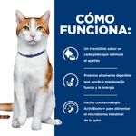Ingredientes | Pollo, harina de gluten de maíz, grasa de pollo, gluten de trigo, trigo entero, cebada perlada quebrada, producto de huevo, hígado de pollo hidrolizado, arroz integral, harina de soya, zanahorias, saborizante de hígado de pollo, aceite de coco, aceite de pescado, cáscaras de nuez molidas, ácido láctico, cloruro de potasio, linaza, pulpa de remolacha desecada, pulpa de cítricos desecada, carbonato de calcio, cloruro de colina, sulfato de calcio, L-arginina, vitaminas (complemento de vitamina E, L-ascorbil-2-polifosfato (fuente de vitamina C), mononitrato de tiamina, complemento de niacina, pantotenato de calcio, complemento de vitamina A, complemento de riboflavina, clorhidrato de piridoxina, complemento de vitamina B12, biotina, ácido fólico, complemento de vitamina D3), taurina, arándanos machacados, DL-metionina, sal yodada, sabores naturales, minerales (sulfato ferroso, óxido de zinc, sulfato de cobre, óxido manganoso, yodato de calcio, selenito de sodio), L-carnitina, óxido de magnesio, tocoferoles mixtos para la frescura, beta caroteno. |