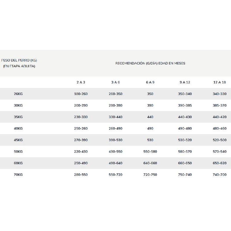 ►Análisis Garantizado: Humedad (máx) 90g/kg; Proteína Cruda (mín) 290g/kg; Grasa Cruda (mín) 140g/kg; Fibra Cruda (máx) 25g/kg; Cenizas (máx) 73g/kg; Calcio (máx) 13.5g/kg; Calcio (mín) 9.000mg/kg; Fósforo (mín) 7.000mg/kg, Sodio (mín) 1.800mg/kg; Metionina (mín) 8000mg/kg; Lisina (mín) 14g/kg; L-Carnitina (mín) 200mg/kg; Condroitina (mín) 200mg/kg; Taurina (mín) 1.000mg/kg; Glucosamina (mín) 600mg/kg; Vitamina E (mín) 500mg/kg; Vitamina C (mín) 100mg/kg; Omega 3 (EPA/DHA) (mín) 5.000mg/kg; Omega 6 (mín) 30g/kg; Manano Oligosacárido (mín) 300mg/kg; Fructoligosacárido (FOS) (mín) 1.000mg/kg; Hexametafosfato de sodio (mín) 3000mg/kg; Energía Metabolizable (mín) 3920kcal/kg