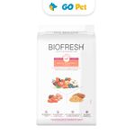 Ingredientes | ►Selección de carnes frescas (pescado, pollo e hígado de pollo – fuentes naturales de glucosamina) (mín. 15%), selección de frutas, legumbres y hierbas frescas (manzanas, papayas, remolachas, zanahorias y orégano – fuentes naturales de beta-caroteno, vitaminas, minerales y fibras) (mín. 5 %), pulpa de tomate concentrado (fuente natural de licopeno), manzanilla en polvo, blueberry en polvo, huevo entero pasteurizado deshidratado, aceite de pescado refinado (fuente natural de EPA y DHA), harina de chicharrón porcino, harina de vísceras de pollo y aceite de pollo (naturalmente conservados con tocoferoles y extracto de romero), grano de sorgo, arvejas deshidratadas, salvado de arveja, fibra de caña de azúcar, arroz integral, arroz partido, semillas de lino, pulpa de remolacha, celulosa en polvo, extracto de yuca (mín. 0,02%), hidrolizado de hígado de pollo y cerdo, L-carnitina, sulfato de glucosamina, sulfato de condroitina, cloruro sódico (sal común), hexametafosfato sódico (mín. 0,3%), DL-metionina, L-lisina, cloruro potásico, cloruro de colina, , vitaminas (A, B1, B2, B6, B12, C, D3, E, K3, H, niacina, ácido pantoténico y ácido fólico), minerales orgánicos (cobre aminoácido-quelato, hierro aminoácido-quelato, manganeso aminoácido-quelato, zinc aminoácido-quelato y complejo aminoácido de selenio), yodato de calcio y antioxidantes naturales (extracto de té verde, concentrado de tocoferoles, extracto de romero y ácido cítrico). |