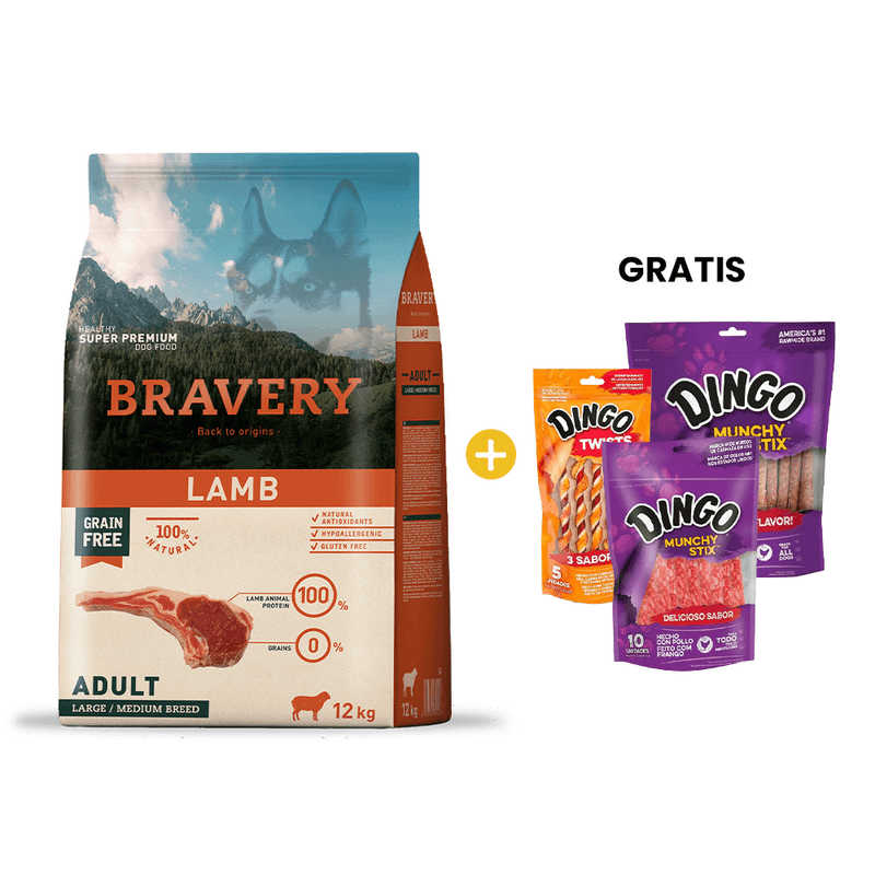 Bravery Lamb Adult Large/Medium Breeds - Adulto Cordero Raza Mediana/Grande 12 kg