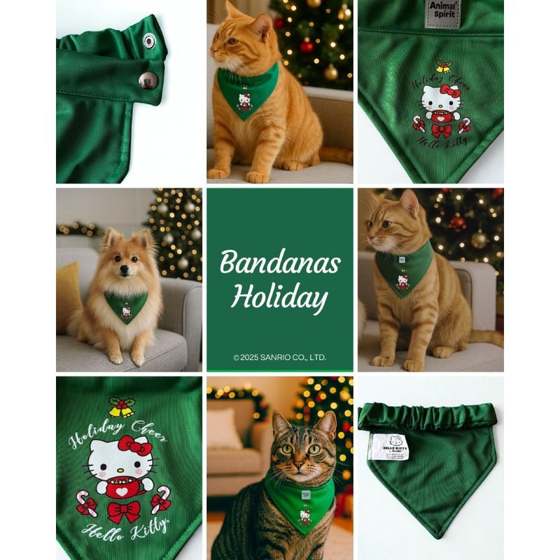 Celebra la magia de la Navidad con las Bandanas Holiday de Hello Kitty X Animal Spirit, el accesorio festivo perfecto para que tu mascota luzca adorable en cada foto y paseo.