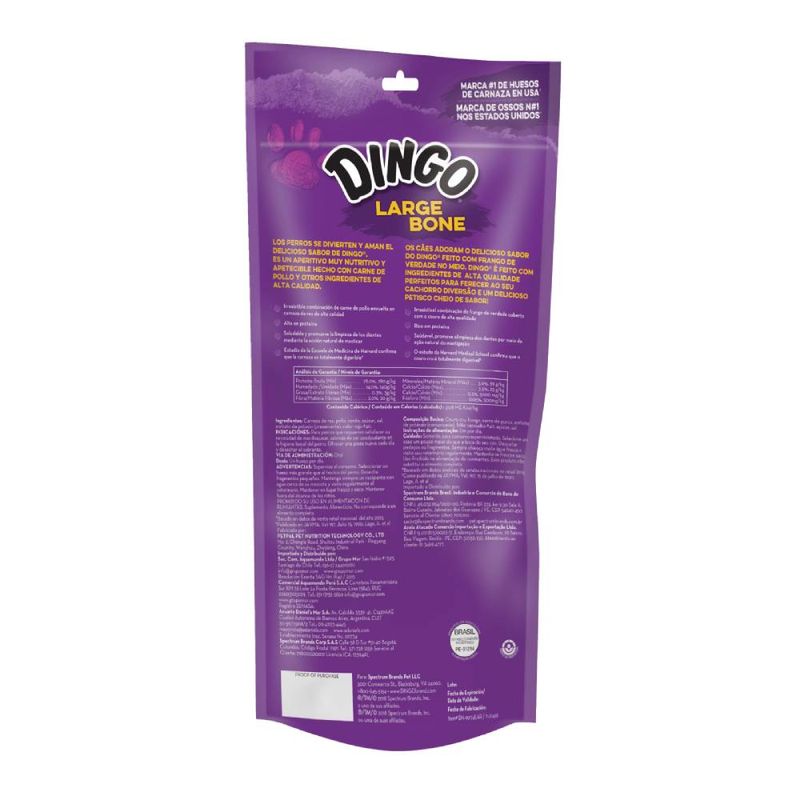 Dingo Large Bone es un delicioso hueso masticable especialmente diseñado para perros de raza grande. Combina carne real con cuero crudo altamente digerible, ofreciendo un snack lleno de sabor, calidad y diversión en cada mordida.