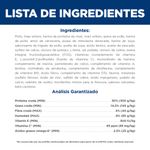 Ingredientes | ►Pollo, trigo entero, harina de gluten de maíz, grasa de pollo, pulpa de remolacha desecada, aceite de soya, cebada perlada quebrada, harina de soya, saborizante de hígado de pollo, sulfato de calcio, ácido láctico, aceite de pescado, cloruro de potasio, fosfato dicálcico, cloruro de colina, sal yodada, vitaminas (complemento de vitamina E, L-ascorbil-2-polifosfato (fuente de vitamina C), complemento de niacina, mononitrato de tiamina, complemento de vitamina A, pantotenato de calcio, complemento de vitamina B12, clorhidrato de piridoxina, complemento de riboflavina, biotina, ácido fólico, complemento de vitamina D3), taurina, minerales (sulfato ferroso, óxido de zinc, sulfato de cobre, óxido manganoso, yodato de calcio, selenito de sodio), tocoferoles mixtos para la frescura, sabores naturales, beta caroteno. |