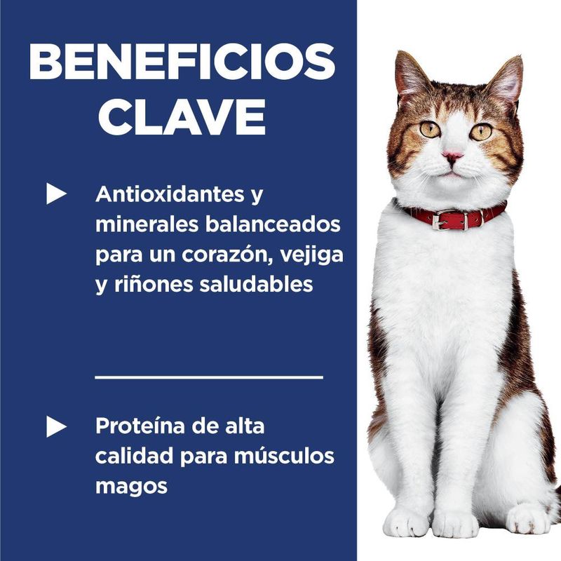 Ingredientes | ►Pollo, trigo entero, harina de gluten de maíz, grasa de pollo, arroz de cervecería, pulpa de remolacha desecada, saborizante de hígado de pollo, sulfato de calcio, ácido láctico, cloruro de potasio, aceite de pescado, cloruro de colina, L-lisina, vitaminas (complemento de vitamina E, L-ascorbil-2-polifosfato (fuente de vitamina C), complemento de niacina, mononitrato de tiamina, pantotenato de calcio, clorhidrato de piridoxina, complemento de riboflavina, complemento de vitamina A, biotina, complemento de vitamina B12, ácido fólico, complemento de vitamina D3), fosfato dicálcico, sal yodada, taurina, minerales (sulfato ferroso, óxido de zinc, sulfato de cobre, óxido manganoso, yodato de calcio, selenito de sodio), L-carnitina, DL-metionina, fibra de avena, tocoferoles mixtos para la frescura, sabores naturales, beta caroteno, manzanas, brócoli, zanahorias, arándanos, guisantes verdes. |