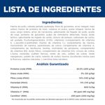 Harina de gluten de maíz, celulosa en polvo, avena entera, harina de soya, sorgo integral, arroz de cervecería, saborizante de hígado de pollo, aceite de soya, proteína de guisante, Pulpa de remolacha desecada, linaza, ácido láctico, saborizante de hígado de cerdo, cloruro de potasio, carbonato de calcio, sal yodada, vitaminas (complemento de vitamina E, L-ascorbilo-2-Polifosfato (fuente de vitamina C), complemento de niacina, mononitrato de tiamina, complemento de vitamina A, pantotenato de calcio, complemento de riboflavina, biotina, complemento de vitamina B12, clorhidrato de piridoxina, ácido fólico, complemento de vitamina D3), Cloruro de Colina, L-Lisina, minerales (Sulfato Ferroso, Óxido de Zinc, sulfato de cobre, óxido manganoso, yodato de calcio, selenito de sodio), taurina, Tocoferoles mixtos para frescura, sabores naturales, L-carnitina, beta caroteno. |