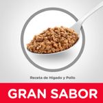 Ingredientes | ►Agua, hígado de cerdo, subproductos de cerdo, pollo, grasa de pollo, producto de huevo, almidón de maíz, harina de soya, harina de gluten de maíz, aislados de proteína de cerdo, saborizante de hígado de pollo, fosfato dicálcico, cáscaras de nuez molidas, carbonato de calcio, levadura de cerveza desecada, goma guar, sabor natural, cloruro de potasio, celulosa en polvo, linaza, pulpa de remolacha desecada, pulpa de cítricos desecada, sal yodada, sulfato de calcio, fructooligosacáridos (FOS), goma de algarroba, aceite de pescado, L-lisina, vitaminas (complemento de vitamina E, L-ascorbil-2-polifosfato (fuente de vitamina C), mononitrato de tiamina, complemento de niacina, clorhidrato de piridoxina, pantotenato de calcio, complemento de vitamina B12, complemento de riboflavina, biotina, complemento de vitamina D3, ácido fólico), arándanos machacados, taurina, carragenina, fibra de avena, óxido de magnesio, tripolifosfato de sodio, minerales (sulfato ferroso, óxido de zinc, sulfato de cobre, sulfato de manganeso, yodato de calcio), beta caroteno. |