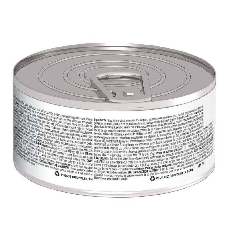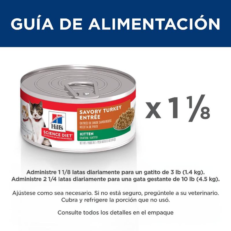 Ingredientes | ►Agua, pavo, menudencias de pavo, hígado de cerdo, salmón, subproductos de cerdo, productos de huevo, aislado de proteína de soja, harina de gluten de maíz, almidón de maíz, sabor a hígado de pollo, grasa de pollo, maíz integral, fosfato dicálcico, pollo, L-lisina , sabor natural, celulosa en polvo, goma guar, levadura seca de cerveza, aceite de pescado, carbonato de calcio, cloruro de potasio, citrato de potasio, goma garrofín, sulfato de calcio, cloruro de colina, sal yodada, carragenina, taurina, vitaminas (suplemento de vitamina E, tiamina). Mononitrato, ácido ascórbico (fuente de vitamina C), suplemento de niacina, clorhidrato de piridoxina, pantotenato de calcio, suplemento de vitamina B12, suplemento de riboflavina, biotina, ácido fólico), óxido de magnesio, minerales (óxido de zinc, sulfato ferroso, sulfato de manganeso, sulfato de cobre, Yodato de calcio), Betacaroteno. |