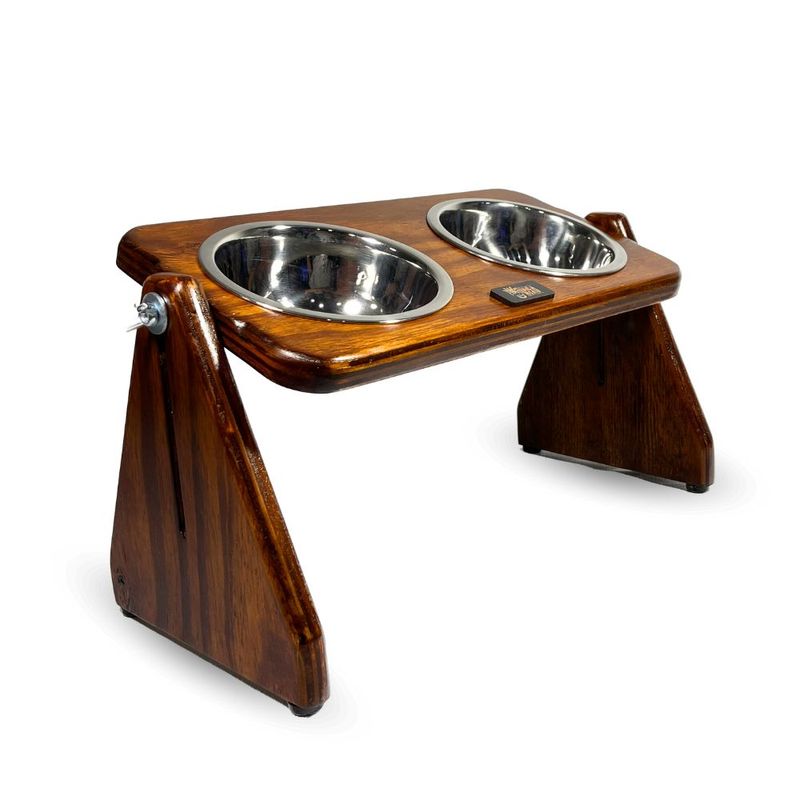 Comedero con altura y grado de inclinación regulables para mayor comodidad de tu mascota. Incluye dos recipientes de acero inoxidable para la comida y el agua. Estructura de finos acabados que dará elegancia a cualquier espacio de tu hogar.