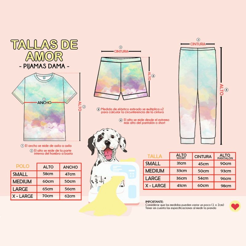 CARACTERÍSTICAS: este bello juego de pijamas está compuesto por un polo de manga corta con cuello redondo y un short con cómoda cintura elástica. Tenemos tallas de Small a XL, también hacemos para caballeros y niños.