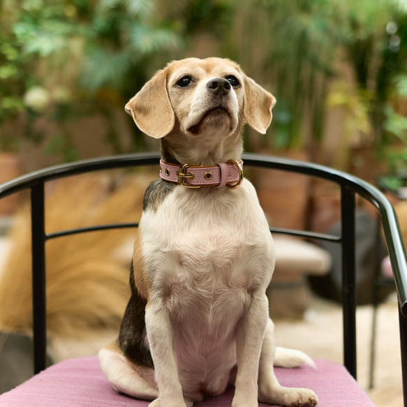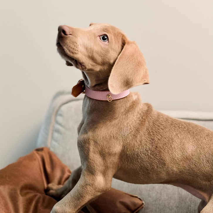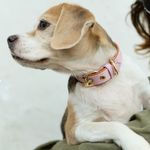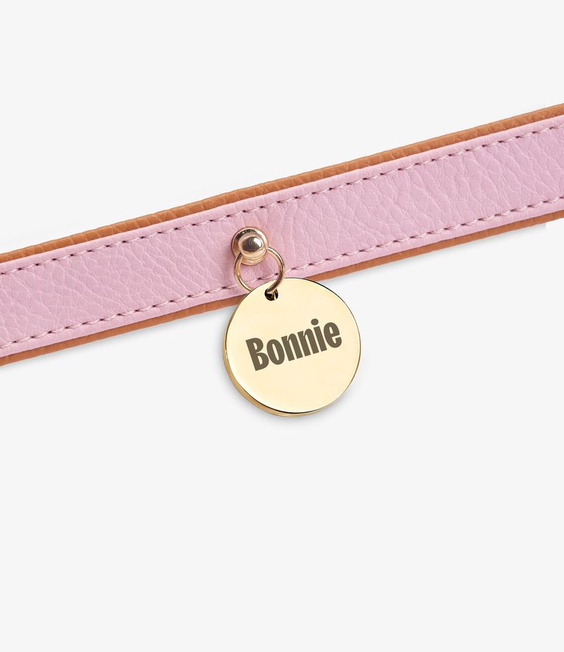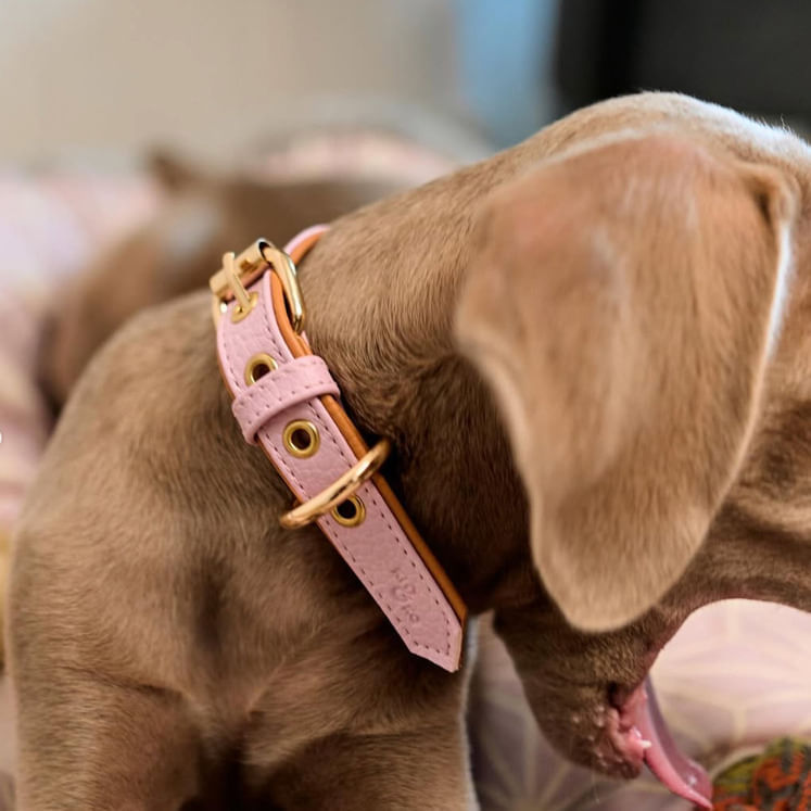 Collar ajustable de perros color rosado y biselado caramelo con accesorios dorados de alta calidad.
