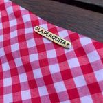 A un lado tiene un diseño vichy y al otro uno de color entero que combina.