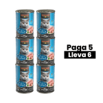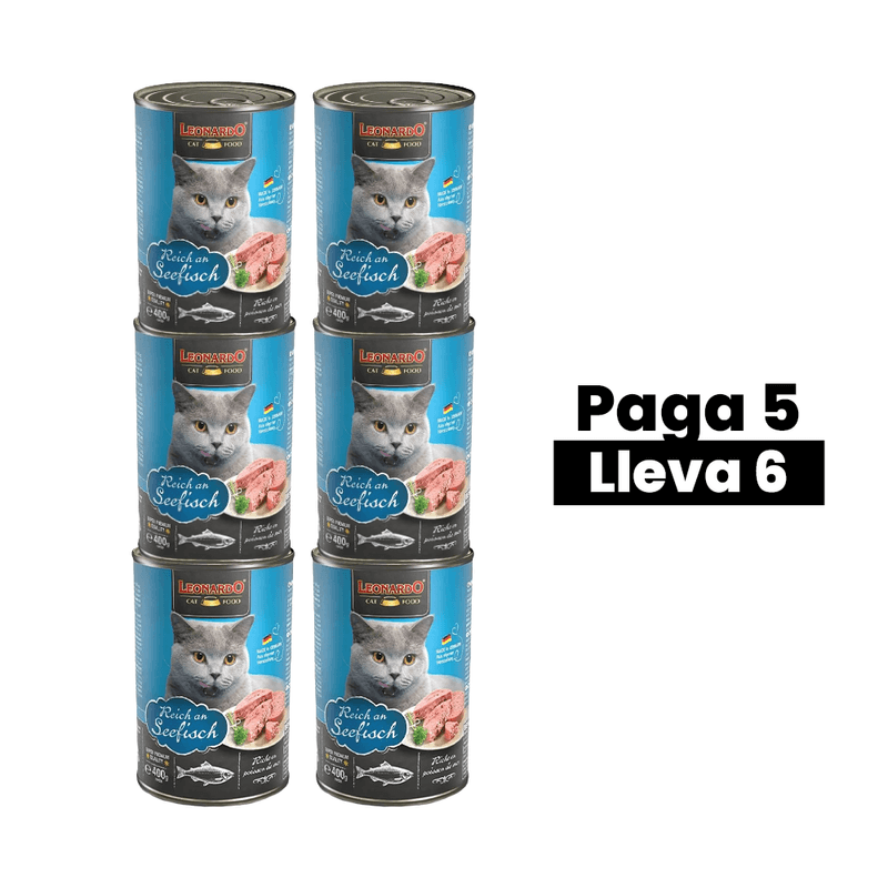 Ingredientes | Carnes y subproductos de animales (40% + caldo de carne 34%); pescados y subproductos de pescado (25% de pescado marino); minerales (0,5%); cáscaras secas de huevo (0,5%) |