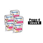 *Promoción 4+1 (Agrega 5 unidades y paga 4) - Promoción válida sobre el precio regular del producto.**Promoción válida para todas las variedades de Monge Fruit 100 Gr - se puede elegir entre todos los sabores disponibles(sale gratis el sabor con el precio más bajo).*DescripciónMonge Fruit Cerdo y Piña es un alimento húmedo completo y equilibrado especialmente diseñado para perros adultos, que combina la calidad de la proteína animal con los beneficios funcionales de la fruta para brindar una nutrición saludable, natural y altamente apetecible. Elaborado con carne de cerdo fresco seleccionada, este paté aporta proteínas de alto valor biológico que contribuyen al desarrollo y mantenimiento de una musculatura fuerte, favoreciendo la vitalidad diaria de tu mascota.