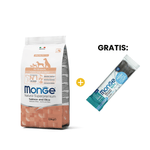 Garantiza el bienestar de su perro gracias a sus nutrientes de muy alta calidad. Productos altamente sabrosos con la garantía de proteína única: solo un tipo de carne. El ingrediente principal es el salmón y están enriquecidos con XOS (xilo-oligosacáridos), la última generación de prebióticos, que mantienen el bienestar intestinal. Contiene extracto de alcachofa, equinácea, orégano y ajo. La condroitina, la glucosamina, el calcio y el fósforo ayudan al desarrollo correcto de las articulaciones y los músculos.