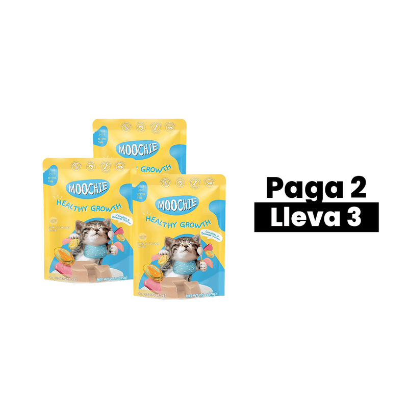 Ingredientes | Pollo, Atún, Hígado de res, Pechuga de pollo, Aminoácidos, Aceite de girasol, Taurina, Agentes gelificantes, Minerales, Vitaminas, Colorante, Aceite crudo de salmón. |