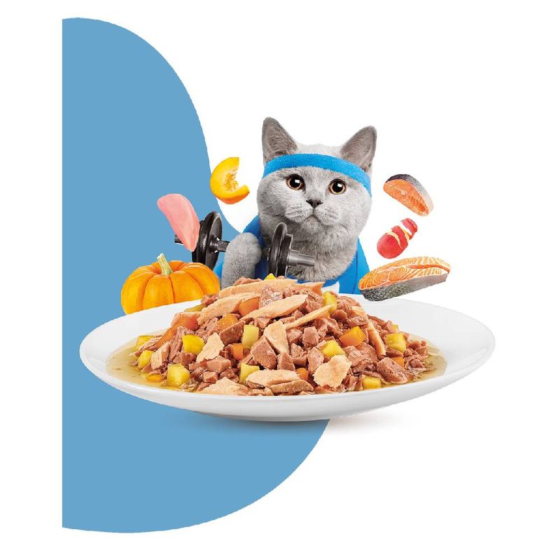 Ingredientes | Pollo, almidón modificado de patata, hígado de cordero, salmón, hígado de res, aminoácidos, aceite de girasol, minerales, espesantes, vitaminas, caramelo, L-carnitina, prebióticos |
