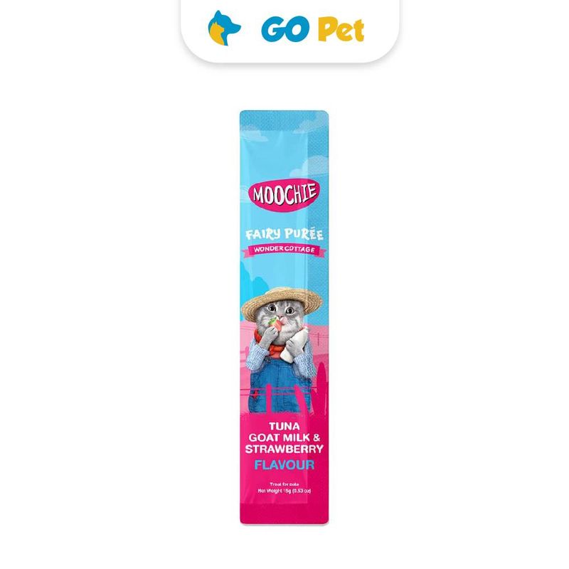 GatosAlimento para gatosSnacks para gatosMoochie Tuna, Goat Milk & Strawberry 15 Gr x 5 Und - Snack para Gato Sabor Atún, Leche de Cabra y Fresa