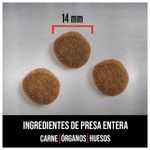 Ingredientes | ►Pollo fresco (25%), arenque entero crudo (6%), pavo crudo (6%), menudillos de pollo frescos (hígado, corazón) (6%), merluza entera cruda (5%), caballa entera cruda (5%), huevos frescos (5%), pollo deshidratado (4%), caballa deshidratada (4%), sardina deshidratada (4%), arenque deshidratado (4%), pavo deshidratado (4%), pescado blanco deshidratado (4%), fibra de lentejas, judías pintas enteras, judías blancas enteras, garbanzos enteros, lentejas rojas enteras, lentejas verdes enteras, guisantes enteros, almidón de guisantes, hígado de pavo crudo (1,5%), grasa de pollo (1,5%), fibra de manzana, algas (fuente de DHA), alga kelp deshidratada, calabaza entera fresca, calabaza butternut entera fresca, calabacines enteros frescos, zanahorias enteras frescas, manzanas enteras frescas, peras enteras frescas, raíz de achicoria deshidratada, col rizada fresca, espinacas frescas, hojas de remolacha frescas, grelos frescos, arándanos rojos enteros, arándanos azules enteros, bayas de saskatoon enteras, cúrcuma, cardo lechoso, raíz de bardana, lavanda, raíz de malvavisco, escaramujos. |
