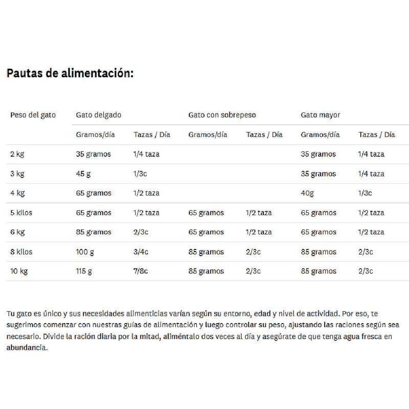 Información adicional | ►Componentes analíticos: Proteína bruta 40%; Contenido en grasa 19%; Materia inorgánica 9%; Fibra bruta 3%; Humedad 10%; Calcio 1,6%; Fósforo 1,2%; Magnesio 0,1%; Taurina 0,2%; Ácidos grasos Omega-6 3,1%; Ácidos grasos Omega-3 1% |