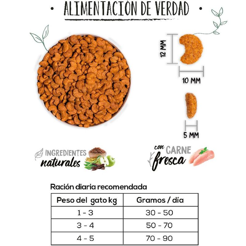 Ingredientes | Carnes 37% (carnes deshidratadas 27%, pollo fresco* 10% antes de la extrusión), trigo integral* (19%), grasa de pollo, maíz integral* (8%), guisantes enteros* (7%), cebada integral* (5%), arroz integral* (5%), proteína de maíz, levadura de cerveza* (1,5%), pulpa de remolacha, proteína hidrolizada de pollo, pescado deshidratado, manzana* (1%), aceite de salmón, extracto de malta, fructo y manano oligosacáridos, plantas aromáticas 0,02% (hinojo*, flor de manzanilla*, anís verde*), yucca schidigera. *INGREDIENTES NATURALES |