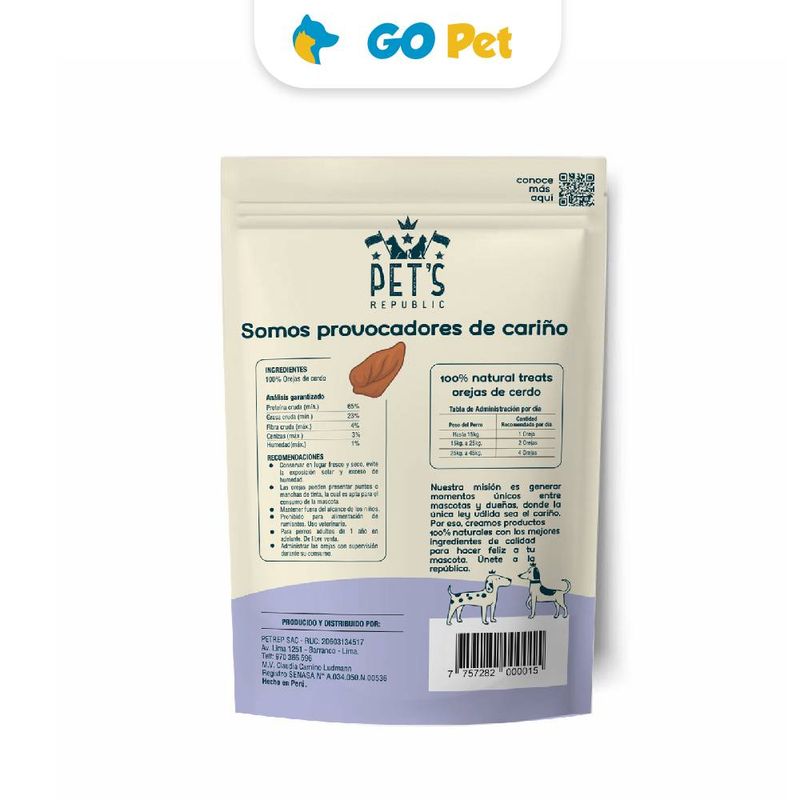 PerrosSnacks y premiosSnacks Naturales o DeshidratadosPet´s Republic Orejas de Cerdo x 4 Unidades