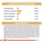 Ingredientes | -COMPOSICIÓN:proteínas de ave deshidratadas, harina de maíz, arroz, grasas animales, aislado de proteínas vegetales*, maíz, hidrolizado de proteínas animales, gluten de maíz, fibras vegetales, pulpa de remolacha, aceite de pescado, minerales, aceite de soja, levaduras completas y partes de las mismas, fructo-oligosacáridos, hidrolizado de levaduras (fuente de manano-oligosacáridos), aceite de borraja (0,1%), hidrolizado de crustáceo (fuente de glucosamina), extracto de Rosa de la India (fuente de luteína), hidrolizado de cartílago (fuente de condroitina).