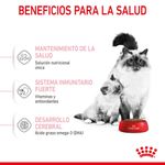 Ingredientes | Proteína de ave deshidratada, grasas animales, harina de maíz, gluten de trigo, arroz, proteínas animales hidrolizadas, productos de levadura, pulpa de remolacha, fibras vegetales, aceite de soja, minerales, aceite de pescado, fructooligosacáridos, levadura hidrolizada (fuente de manooligosacáridos y betaglucanos) (0,30 %), aceite de algas Schizochytrium sp. (fuente de DHA), harina de caléndula. |