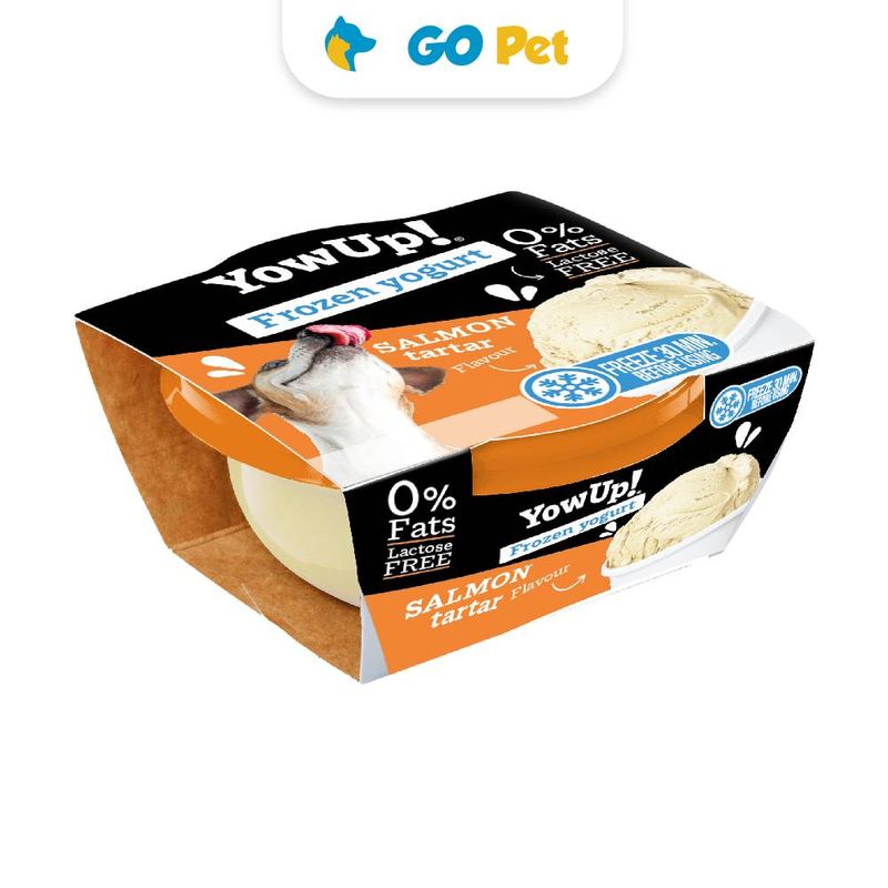 - Como Postre: Puedes congelarlo y hacer helados muy sanos, dosificarlo en un juguete interactivo o en un molde. Si vas a hacer petsposteria, puedes incorporar el yogur YowUp como ingrediente, ya que les gusta y no aporta azúcar añadido, ni lactosa.